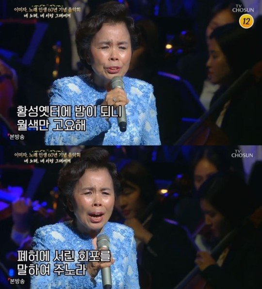 이날 방송에서 이미자는 "돌아보면 날 무대 위에 서게 해주셨던 건 여러분이었다"며 "60년이란 긴 시간을 살 수 있게 해주셔서 감사하다"고 인사를 전했다.