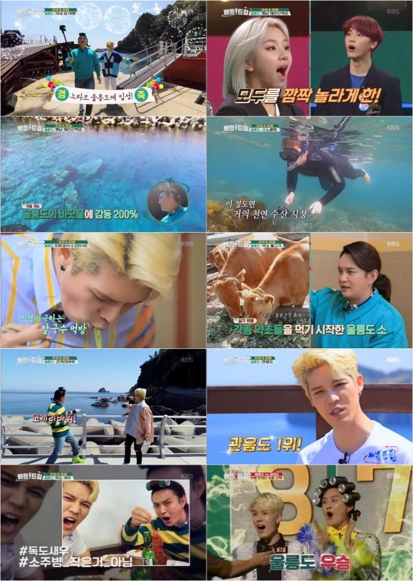 지난 18일 방송된 KBS 2TV ‘배틀트립’에서는 ‘국내 섬 여행’을 주제로 노라조 조빈-원흠과 트와이스 다현-채영-쯔위가 여행 설계자로, 더보이즈 주학년이 스페셜 MC로 출연했다. 특히 이날 방송에서는 울릉도로 떠난 노라조의 ‘니가 사는 그 섬 투어’가 소개돼 시청자들의 눈길을 사로잡았다.