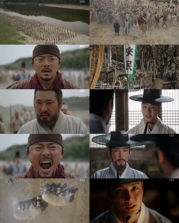 황룡강 전투는 앞선 황토현 전투보다 동학농민군에 더욱 불리했다. 지방의 관군이 아닌, 중앙의 경군과 싸워야 했기 때문. 경군은 대포와 회전포를 비롯, 강력한 신식무기로 무장한 군대였다. 거의 죽창과 맨몸으로 싸워야 했던 동학농민군은 자칫하다 몰살당할 수도 있는 상황. 하지만 전봉준(최무성 분)을 필두로 한 동학농민군은 결코 무너지지 않았다. 굳센 의지로 버티고 또 버텼다.