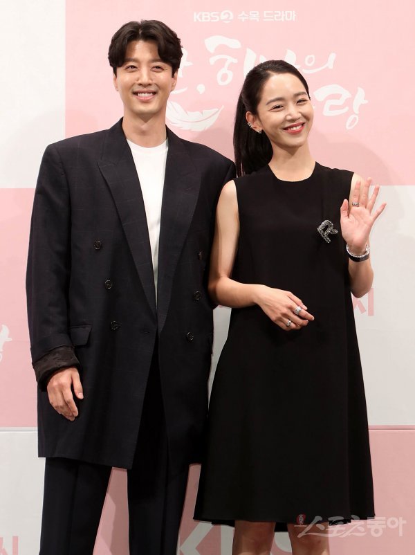 배우 이동건과 신혜선(오른쪽)이 21일 서울시 강남구 임피리얼 팰리스 서울에서 열린 KBS 2TV 새 수목드라마 ‘단, 하나의 사랑’ 제작발표회에 참석해 포즈를 취하고 있다.