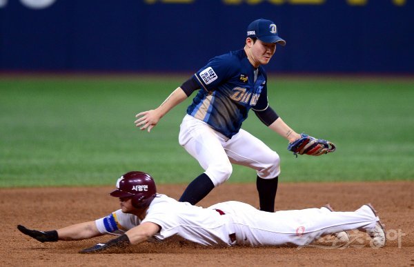 3회말 1사 1루 상황에서 1루주자 키움 이지영이 2루 도루에 성공하고 있다.