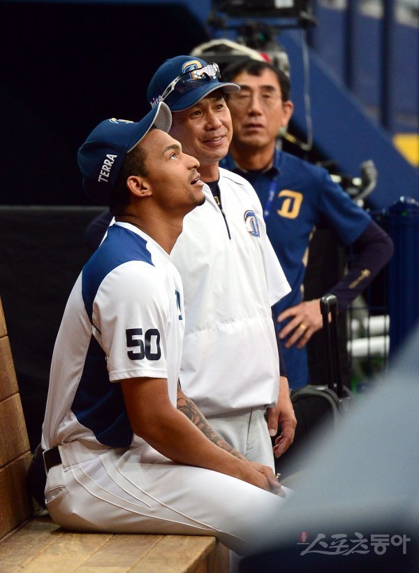 NC 베탄코트와 전준호 코치가 이야기를 나누고 있다.