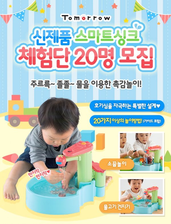 완구업체 손오공이 두뇌발달 물놀이 완구 ‘스마트 싱크’ 출시 기념, 제품 체험단을 모집(사진)한다.