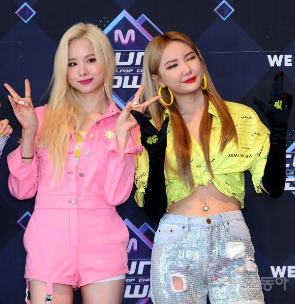 23일 서울 상암동 CJ E&M센터에서 열린 ‘엠카운트다운’ 리허설에 EXID 솔지, LE가 참석해 카메라를 향해 포즈를 취하고 있다.