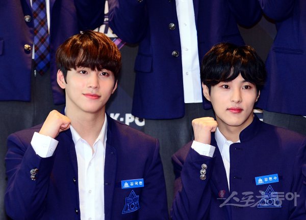 23일 서울 상암동 CJ E&M센터에서 열린 ‘엠카운트다운’ 리허설에 프로듀스 X 101 김국현, 강현수가 참석해 카메라를 향해 포즈를 취하고 있다.