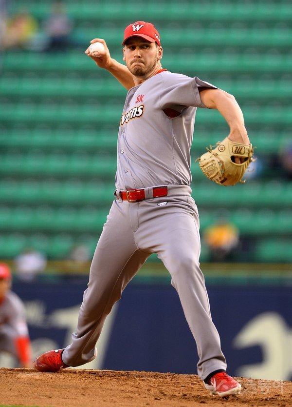 SK 선발 다익손이 1회말 등판해 힘차게 공을 던지고 있다.