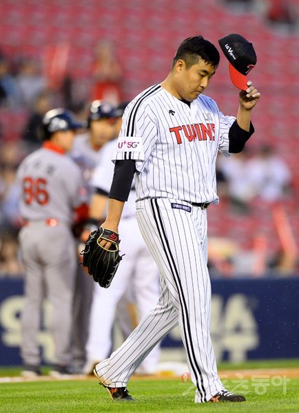23일 서울 잠실야구장에서 ‘2019 신한은행 MY CAR KBO리그’ SK 와이번스와 LG 트윈스의 경기가 열렸다. LG 선발 이우찬이 3회초 1사 SK 고종욱에게 3루타를 허용한 후 아쉬워하고 있다. 잠실|김진환 기자 kwangshin00@donga.com