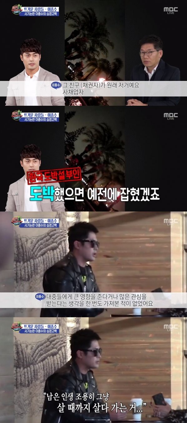 뿐만 아니라 이종수는 국내에서의 채무 상황에 대해 “갚아나가고 있는 와중에 채권자가 사라졌다. 그 친구가 사채업자였는데 일이 잘못된 모양이더라”며 “도박빚이라는 것도 채권자들이 만들어 낸 것이다. 도박을 했으면 예전에 잡혔을 것”이라고 강력하게 부인했다.