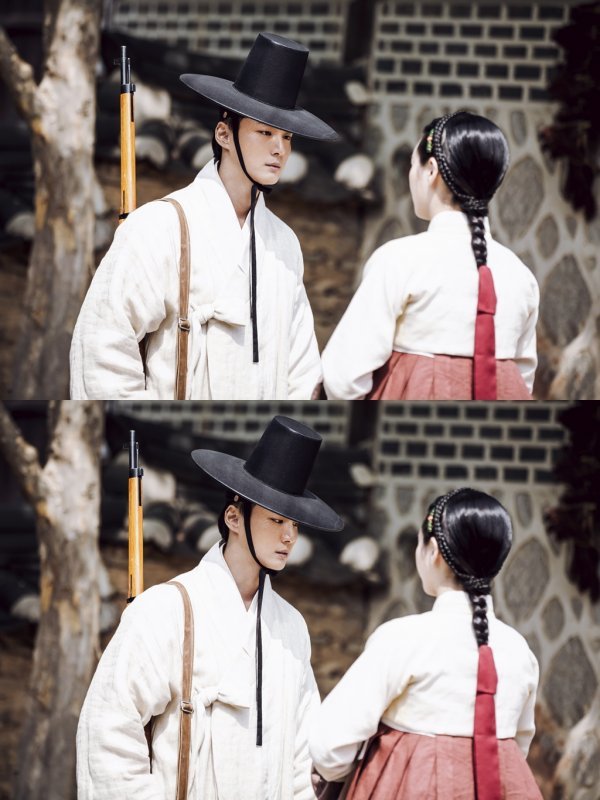 공개된 사진 속 이방이 된 백이현은 어깨에 총을 멘 채 다시금 전쟁터에 나갈 준비를 한 모습이다. 그런 백이현에 앞에 선 여인이 황명심. 황명심을 바라보는 백이현의 눈빛이 어딘지 애처롭고 차가워 궁금증과 안타까움을 자아낸다.
