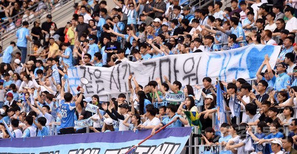 대구 서포터들이 이날 30-30 클럽 시상식을 가진 세징야를 응원하는 플래카드를 들고 있다.
