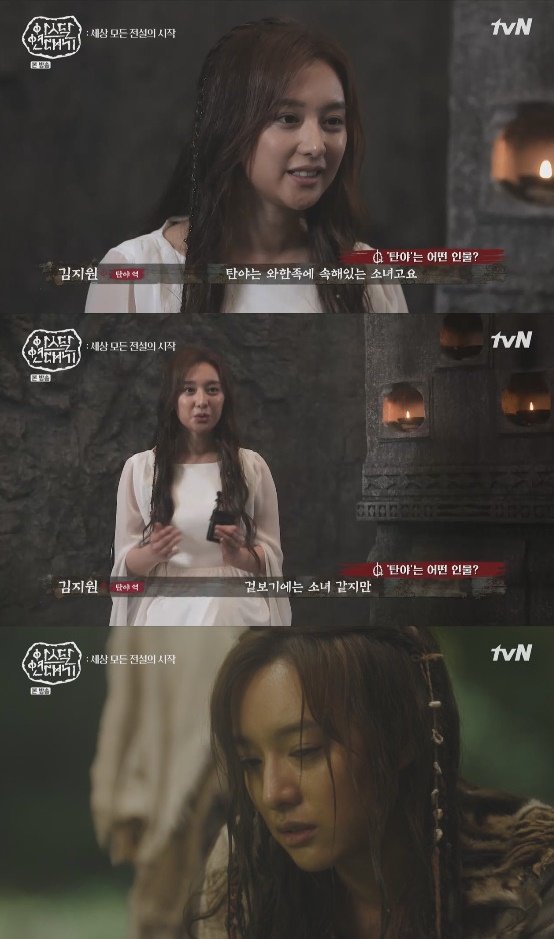 와한족 씨족 어머니, 탄야 역을 맡은 김지원은 "겉은 소녀같지만 속은 강한 아이"라고 역할을 소개했다. 이어 송중기가 맡은 은섬 역과의 관계에 대해선 "오랫동안 알고 지냈지만 어떤 관계인지 애매한 사이다. 은섬과 함께 있으면 사춘기 소녀같아진다"라고 덧붙였다.