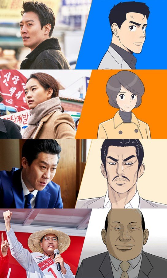 여기에 원작 캐릭터와 완벽한 싱크로율 일치를 보여주는 배우들의 합류도 영화의 재미를 높인다. 원작 팬들이 선정한 ‘장세출’ 역 캐스팅 투표에서 압도적인 1위를 차지했던 김래원은 외모뿐만 아니라, 강렬한 카리스마부터 마음먹은 일은 무조건 직진하는 순정남의 면모까지 ‘장세출’ 그 자체가 되어 지금까지 필모그래피를 뛰어넘는 레전드 캐릭터를 탄생시켰다. 충무로가 주목하는 배우 원진아는 어려움에 처한 사람들을 진심으로 돕는 따뜻한 내면과 옳은 일이라면 몸을 사리지 않는 강단 있는 열혈 변호사 ‘강소현’ 역을 자연스럽게 표현해 그녀만의 밝은 매력을 전할 예정이다. 또한 반전 악당의 새로운 지평을 열 세출의 라이벌 조직 보스 ‘조광춘’ 역의 진선규는 험상궂은 외모와 상반되는 코믹한 모습을 통해 미워할 수 없는 악역을 선보인다. 마지막으로 미친 캐릭터 소화력을 보여주는 최귀화는 세출을 눈엣가시로 여기는 2선 의원 ‘최만수’ 역을 맡았다. 최귀화는 원작 캐릭터와 외모는 가장 다르지만, 철저한 캐릭터 분석을 통해 생동감 넘치는 연기를 보여주며 극의 긴장감과 재미를 극대화한다.