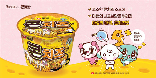 스푼즈 캐릭터를 콘치즈면 제품 패키지에 담았고, QR코드를 찍으면 스푼즈 캐릭터 비티(BT)와 콘치즈면이 함께 등장하는 시리즈 영상도 볼 수 있다. 엔씨소프트는 서울 신사동 가로수길의 ‘스푼즈 플래그십 스토어’에서 소셜네트워크서비스(SNS) 인증 이벤트를 진행한다.
