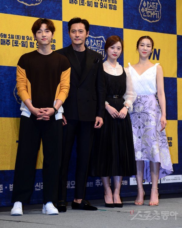 28일 서울 강남구 논현동 임피리얼팰리스 서울에서 열린 케이블채널 tvN 새 토일드라마 ‘아스달 연대기’ 제작발표회에서 송중기, 장동건, 김지원, 김옥빈이 포토타임을 갖고 있다.