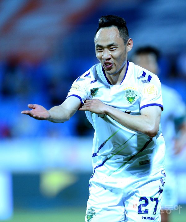 29일 춘천송암스포츠타운 주경기장에서 열린 프로축구 ‘하나원큐 K리그1 2019’ 전북현대와 강원FC 경기에서 전북 문선민이 역전골을 성공시킨 후 환호하고 있다.