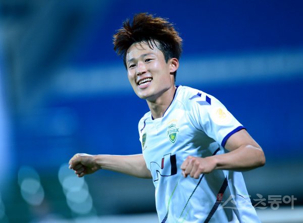 29일 춘천송암스포츠타운 주경기장에서 열린 프로축구 ‘하나원큐 K리그1 2019’ 전북현대와 강원FC 경기에서 전북 손준호가 동점골을 성공시킨 후 환호하고 있다.
