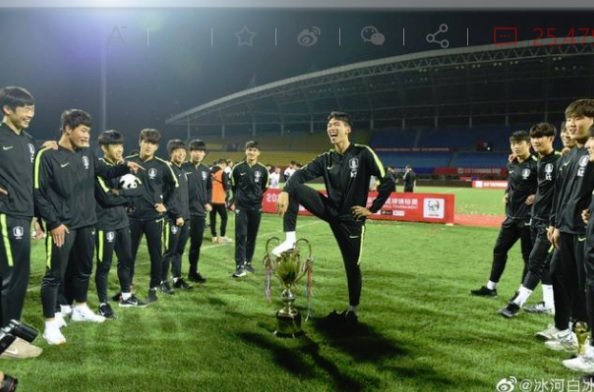 앞서 박규현은 한국 U-18 축구 대표팀 소속으로 지난 29일 열린 중국과의 판다컵 3차전에서 3-0 완승을 거둔 후 트로피에 발을 올려 트로피를 모독하는 행동을 했다는 현지 언론의 비판을 받았다.