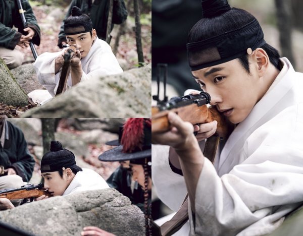 이런 가운데 1일 ‘녹두꽃’ 제작진이 결국 총을 들고 만 백이현의 모습을 공개하며 이목을 집중시키고 있다. 사진 속 백이현은 깊은 산속, 바위 뒤에 몸을 숨긴 채 총구를 겨누고 있다. 그의 뒤에는 경군들이 자리잡고 있다. 날카로운 눈빛으로 목표물을 겨냥하는 백이현의 표정이 결연하고도 매섭다. 사진만으로도 숨소리조차 쉽게 낼 수 없는 일촉즉발의 상황임을 짐작할 수 있다.