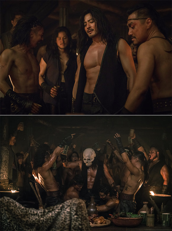 또한 타곤(장동건 분)은 “우리 대칸은 모두 하나의 형제”, “우리가 지키지 못했고, 우리를 지켜준 우리의 형제들. 땅을 떠나 아스의 신들의 품에 안긴 우리의 형제들의 빛나는 죽음을 위해” 라며 부대를 아우르며 부드러운 카리스마를 선보였다. 뿐만 아니라 술에 너무 취한 나머지 태알하(김옥빈 분)를 보고 몸을 제대로 가누지 못해 앞으로 고꾸라지는 모습은 엉뚱하기까지해 캐릭터의 풍성함을 더했다.