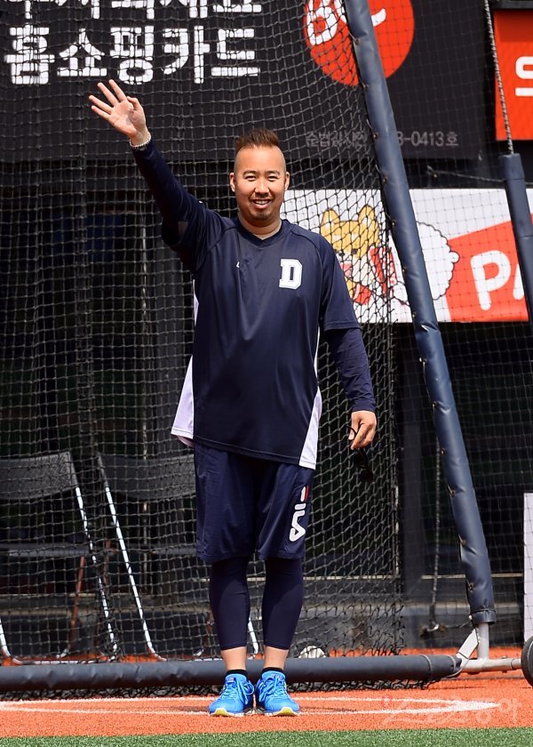 2일 경기도 수원 kt위즈파크에서 ‘2019 신한은행 MY CAR KBO리그’ 두산베어스와 kt위즈의 경기가 열린다. 두산 유희관이 kt 선수들을 향해 인사를 하고 있다.