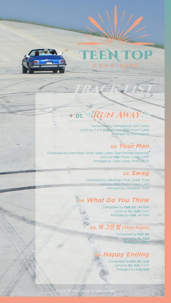 그룹 틴탑이 새 앨범 ‘DEAR. N9NE(디어나인)’ 트랙리스트를 공개했다.