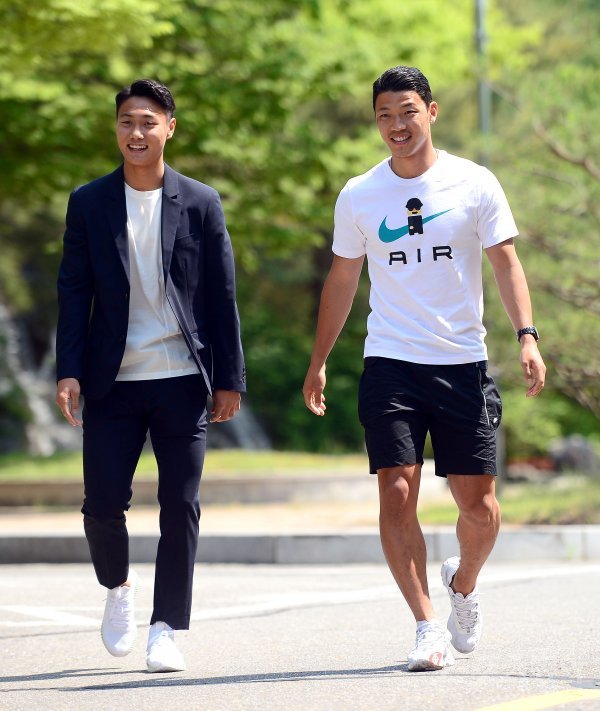 백승호와 황희찬이 NFC로 들어오고 있다.