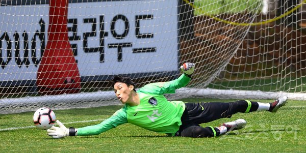 호주, 이란과 평가전을 갖는 한국 축구대표팀이 4일 파주NFC(국가대표 트레이닝센터)에 소집돼 훈련을 가졌다. 대표팀 골키퍼 김승규가 훈련을 하고 있다.