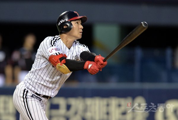 4회말 1사 만루에서 LG 오지환이 우월 만루 홈런을 쏘아 올리고 있다.