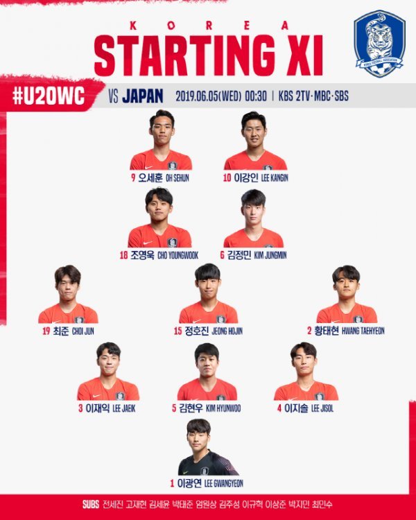 정정용 감독이 이끄는 한국은 5일 오전 0시 30분(이하 한국시각) 폴란드 루블린에 위치한 루블린 경기장에서 일본과 2019 국제축구연맹(FIFA) U-20 월드컵 16강전을 치른다.