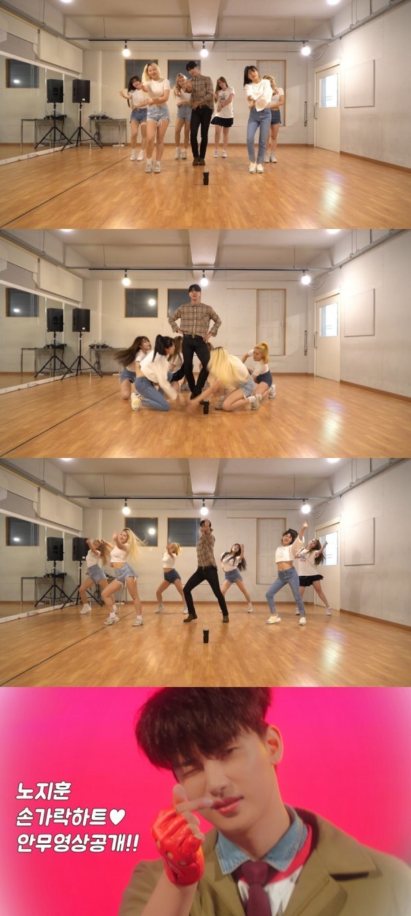 영상 속 노지훈은 캐주얼한 의상을 입고 신나는 라틴 리듬의 \'손가락하트\'와 어울리는 경쾌하고 감각적인 안무를 선보이며 보는 이들의 시선을 사로잡고 있다.