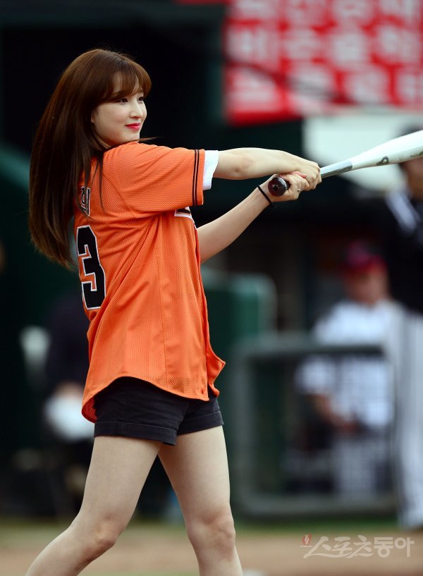 8일 대전 한화생명이글스파크에서 ‘2019 신한은행 MY CAR KBO리그’ LG 트윈스와 한화이글스 경기가 열렸다. 경기 전 가수 율희가 시타를 하고 있다.