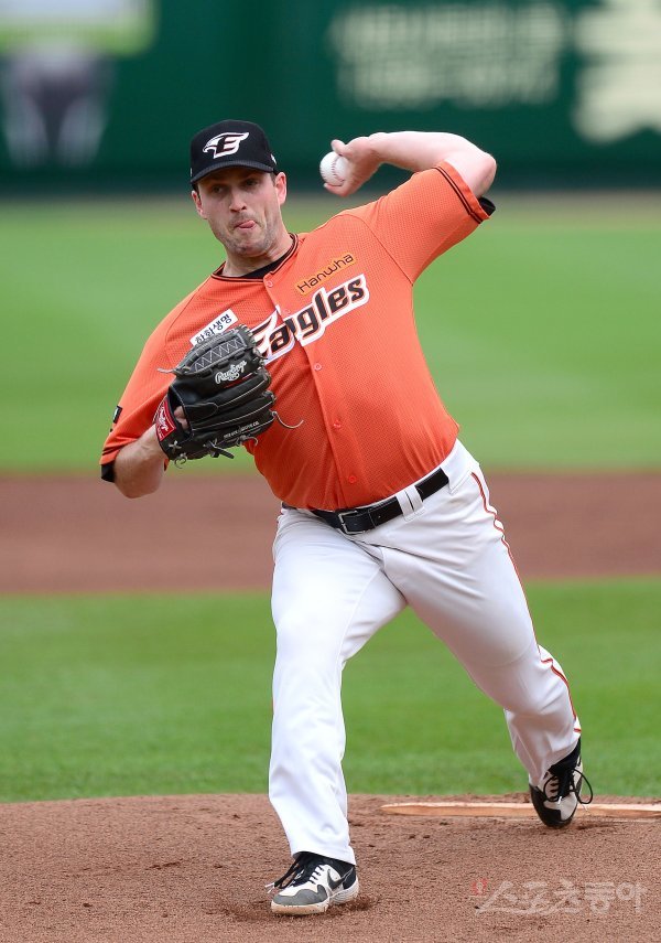 선발 투수로 등판한 한화 채드 벨이 역투하고 있다.