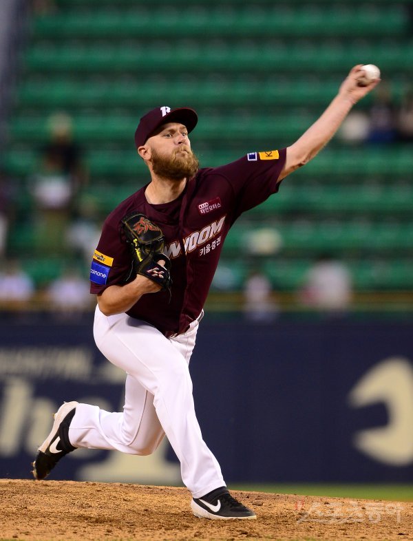 키움 선발 요키시가 9회말 등판해 힘차게 공을 던지고 있다.