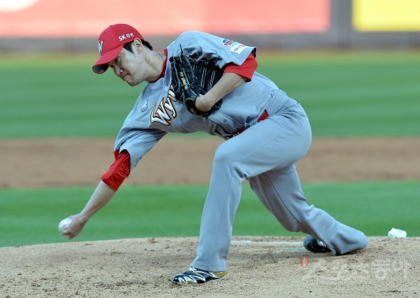SK 선발투수 박종훈이 힘차게 볼을 던지고 있다.