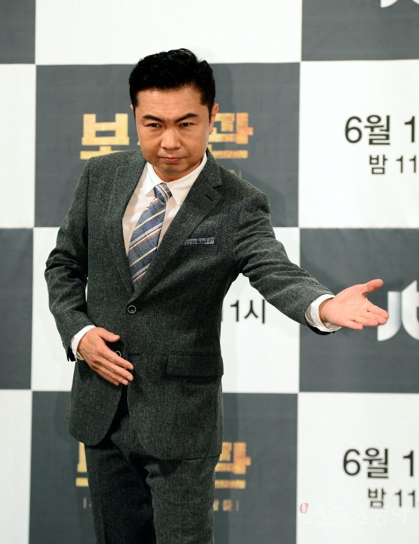 13일 서울 강남구 논현동 임피리얼팰리스호텔에서 jtbc 드라마 ‘보좌관’ 제작발표회에 참석한 임원희가 카메라를 향해 포즈를 취하고 있다.