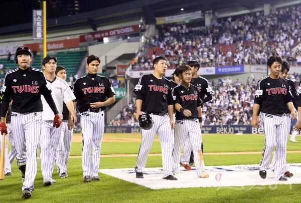 14일 서울 잠실야구장에서 열린 ‘2019 신한은행 MY CAR KBO리그’ LG트윈스와 두산베어스의 경기에서 두산이 7-4로 승리하며 LG전 5연승을 질주했다. LG 선수들이 경기 후 굳은 표정으로 경기장을 빠져나가고 있다.