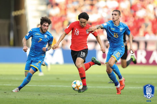 역전을 허용한 한국은 후반 중반부터 우크라이나 골문을 집중적으로 노렸다. 공격 횟수가 눈에 띄게 늘었다. 이재익의 날카로운 헤더가 나오며 동점을 노렸다.