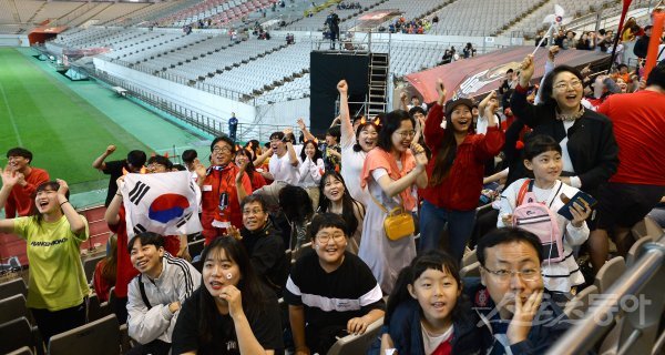 FIFA U-20 월드컵 대한민국과 우크라이나의 결승전을 응원하기 위해 시민들이 16일 새벽 서울 상암월드컵경기장을 찾아 열띤 응원을 펼치고 있다.?상암 | 김진환 기자 kwangshin00@donga.com