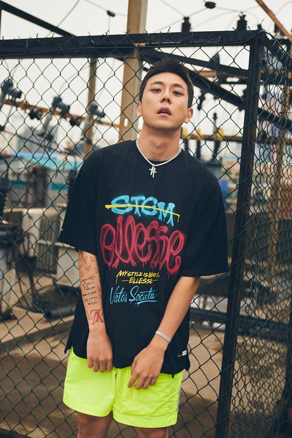 하프볼 로고 후디를 입은 귀여운 ‘컴튼베어(Compton Bear)’와 ‘MY STYLE IS WHO I AM, ELLESSE’라는 엘레쎄 슬로건을 감각적으로 써내려간 ‘네온스프레이 티셔츠’에는 유스컬쳐의 자유분방함을 표출해내고 있다.