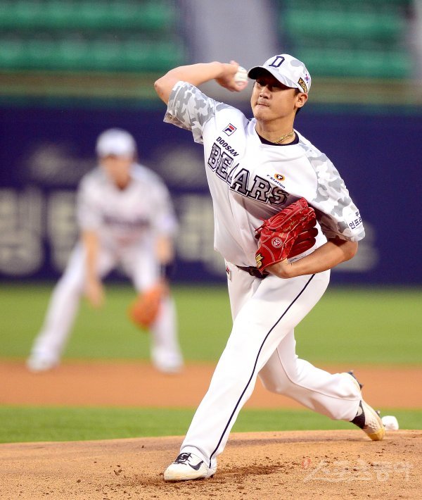 선발 투수로 등판한 두산 이용찬이 역투하고 있다.