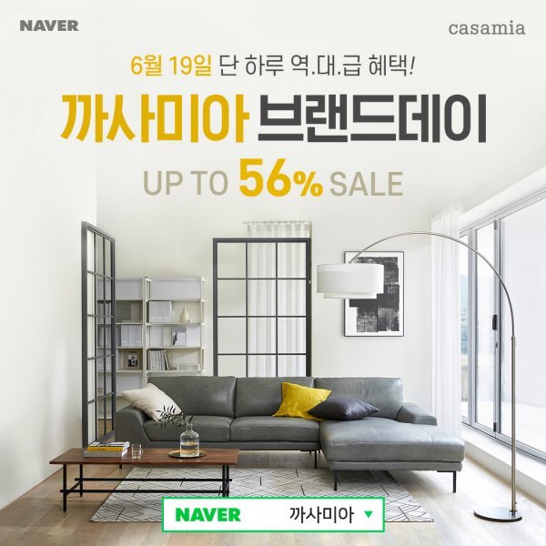 신세계그룹의 리빙 브랜드 까사미아가 19일 네이버 쇼핑 플랫폼에서 인기 가구와 소품을 최대 56%까지 할인 판매하는 ‘까사미아 브랜드데이’ 행사(사진)를 진행한다.