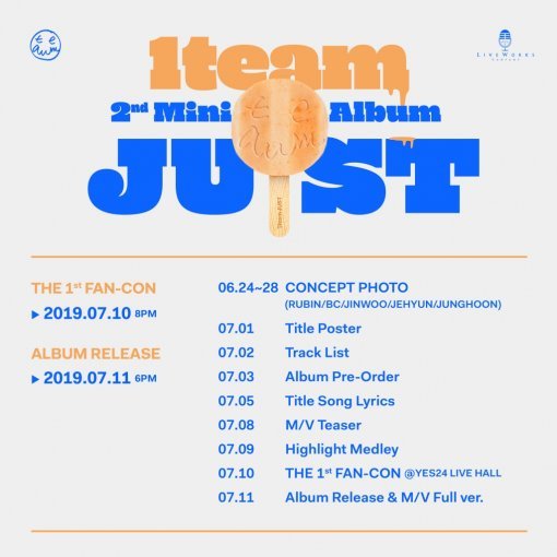 또한 7월 11일 두 번째 미니앨범 'JUST'의 발매 하루 전인 7월 10일에는 1TEAM의 첫 번째 미니 팬콘이 개최된다고 적혀 있어 관심을 모으고 있다.