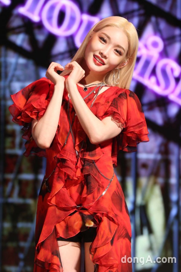 가수 청하가 24일 오후 서울 마포구 서강대학교 메리홀에서 열린 네 번째 미니앨범 ‘플러리싱(Flourishing)’을 발매 쇼케이스에서 포토타임을 하고 있다.