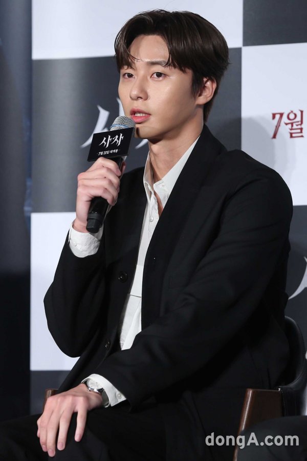 배우 박서준이 26일 오전 서울 광진구 롯데시네마 건대입구점에서 열린 영화 \'사자\' 제작보고회에 참석하고 있다.