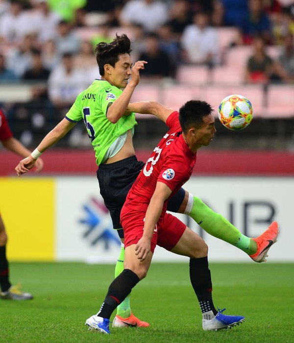 26일 전주월드컵경기장에서 열린 전북 현대와 상하이 상강의 2019 아시아축구연맹(AFC) 챔피언스리그(ACL) 16강 2차전에서 전북 임선영이 상하이 수비를 뚫고 공격하고 있다. 전주 | 김종원 기자 won@donga.com