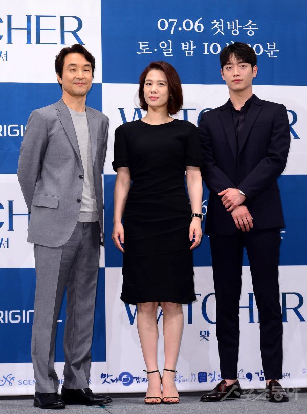 배우 한석규와 김현주, 서강준(왼쪽부터)이 2일 서울시 강남구 임피리얼 팰리스 서울에서 열린 OCN 새 토일 드라마 ‘왓쳐(WATCHER)’제작발표회에서 포토타임을 갖고 있다.