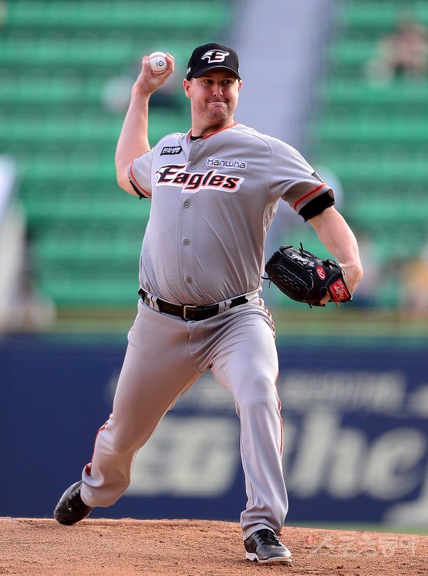 2일 서울 잠실야구장에서 ‘2019 신한은행 MY CAR KBO리그’ 한화 이글스와 LG 트윈스의 경기가 열렸다. 한화 서폴드가 선발 등판해 힘차게 공을 던지고 있다.