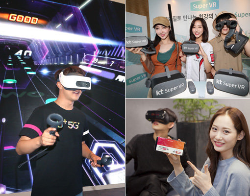 KT는 앞서 6월28일 4K 초고화질의 무선 VR 서비스 ‘슈퍼VR’을 내놨다. 지난해 11월 선보인 기가라이브TV의 단말 사양을 업그레이드하고, 콘텐츠 라인업을 강화해 새로운 이름으로 선보였다. 특히 고성능 4K 올인원 단말을 사용해 보다 현실감 높은 VR 콘텐츠 경험이 가능하다는 것이 KT측 설명이다. VR영상과 게임도 늘렸다. 4K 초고화질 콘텐츠 450여 편을 선보이고, 스포츠와 슈팅, 공포, 리듬액션 등 다양한 장르의 게임 15종을 제공한다. 또 앞으로 매월 2종씩 신규 게임을 추가할 예정이다. 월 8800원의 월정액 요금제 ‘슈퍼VR 패스’도 내놓았다. 슈퍼VR 서비스를 이용하기 위해선 단말이 필요한데, KT는 슈퍼VR 패스 6개월 이용권과 묶어 45만 원에 판매한다. KT는 이와 함께 500여 매장에 체험존을 마련해 시연 기회를 제공하기로 했다.