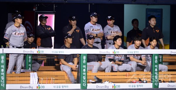 2일 서울 잠실야구장에서 ‘2019 신한은행 MY CAR KBO리그’ 한화 이글스와 LG 트윈스의 경기가 열렸다. 3연패에 빠져닜는 한화의 덕아웃 선수들이 굳은 표정으로 경기를 지켜보고 있다.