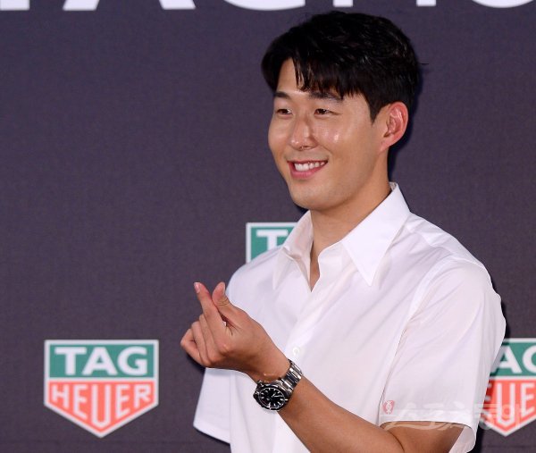 토트넘 홋스퍼의 손흥민이 3일 서울 성동구 성수동 바이산 갤러리 카페에서 열린 스위스 워치 브랜드 태그호이어의 ‘손흥민 리미티드 에디션’ 출시기념 행사에 참석해 포즈를 취하고 있다.